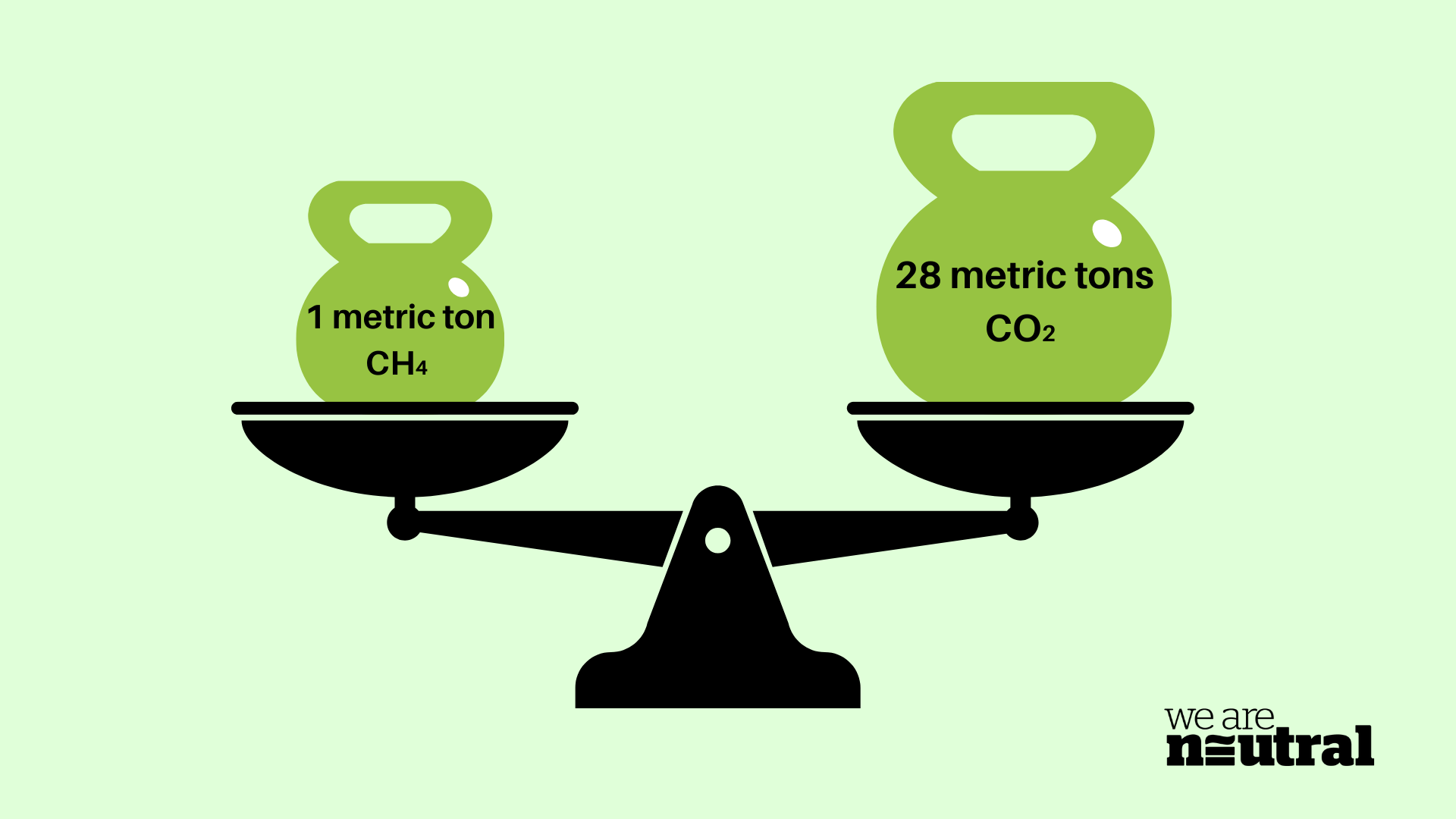 For example, over 100 years, 1 metric ton of methane (CH4) traps about 28 times as much energy in the atmosphere as 1 metric ton of CO2. When using the standard unit, we would say 1 metric ton of CH4 equals 28 tCO2e.