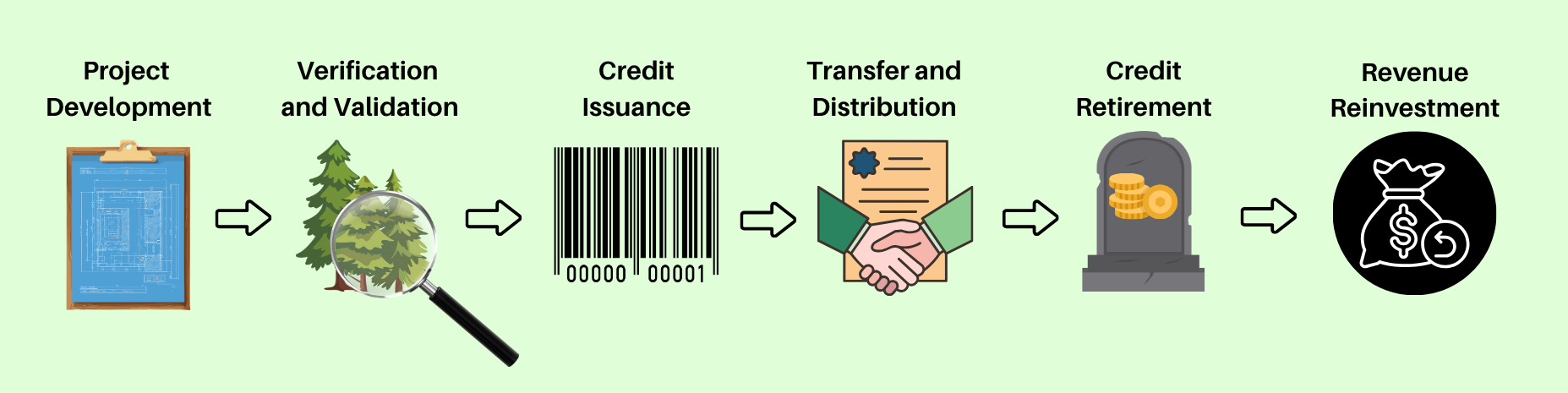 Transfer and Distribution: Credits can be bought and sold on the voluntary carbon market through direct purchases, brokers, or marketplaces.
